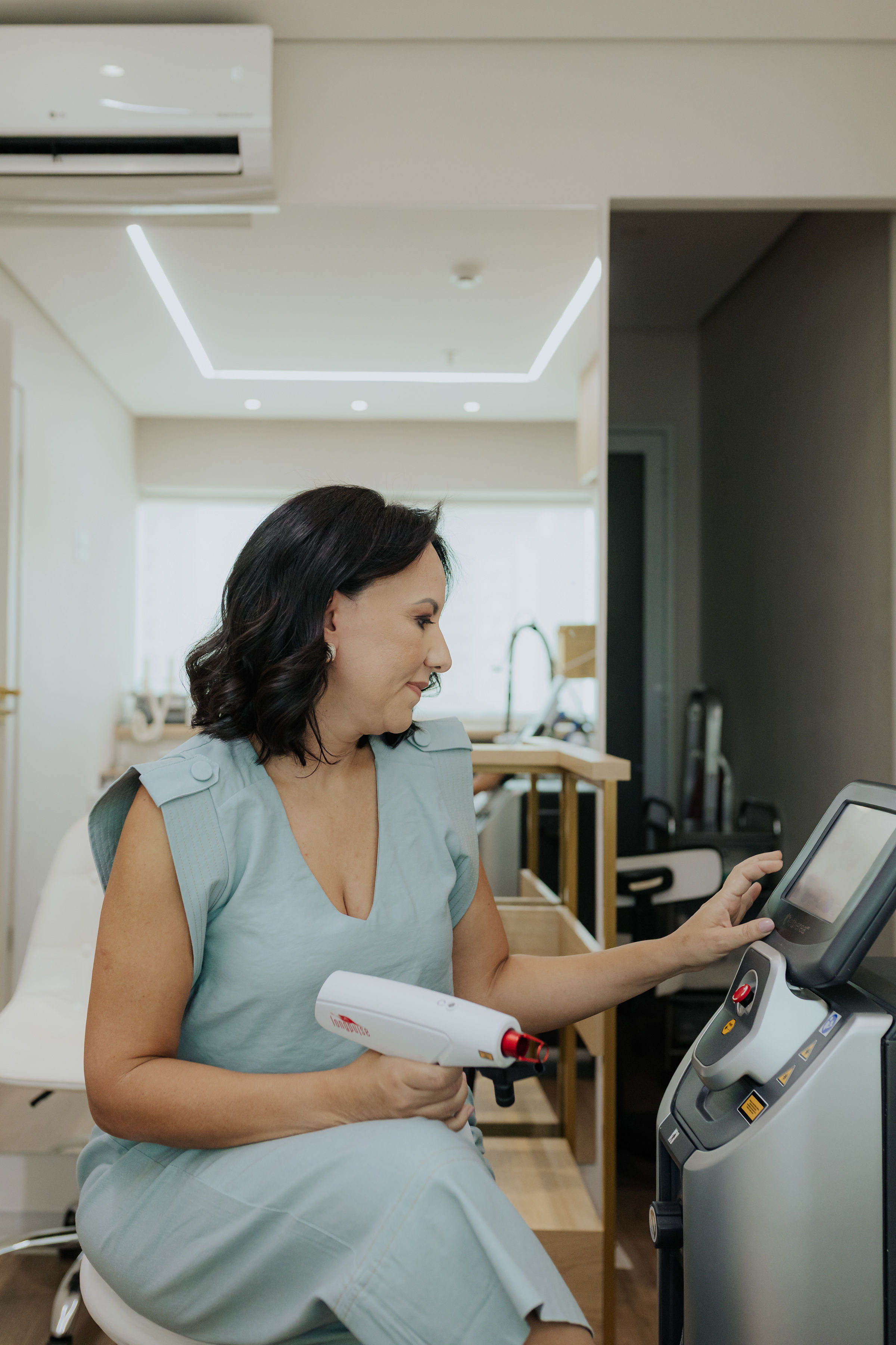 Em minhas pesquisas e também na prática clínica, percebo que a tecnologia a laser trouxe uma revolução nos cuidados vasculares. O laser transdérmico utiliza feixes de luz concentrada, aplicados diretamente sobre a pele, para agir seletivamente nos pequenos vasos dilatados (os “vasinhos”).